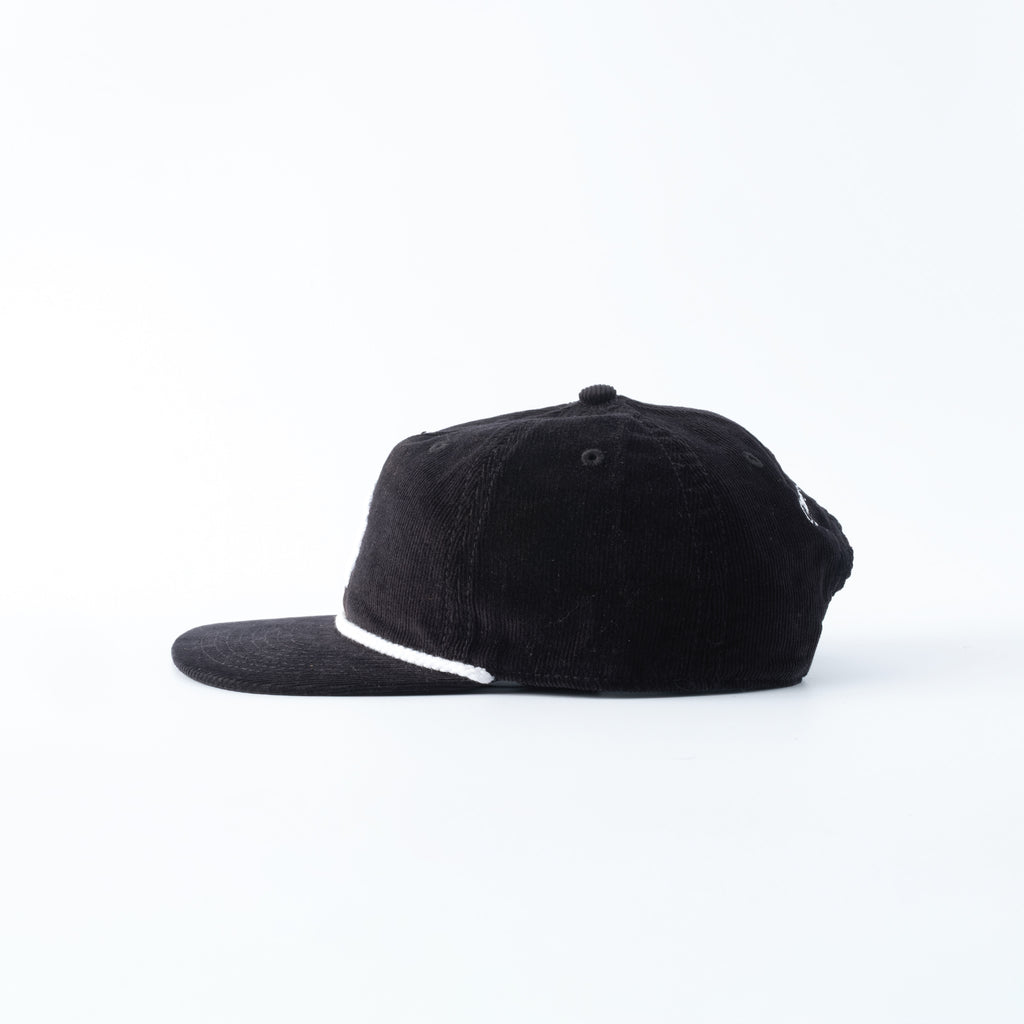 • A mid-weight, unstructured five-panel cap crafted from 100% cotton with 16-Wale Partridge Cord. Enhanced with a unique matte nylon rope detail at the crown for a modern appeal. With a flat peak, plastic snapback, and tonal under-peak lining. One size fits all